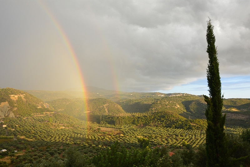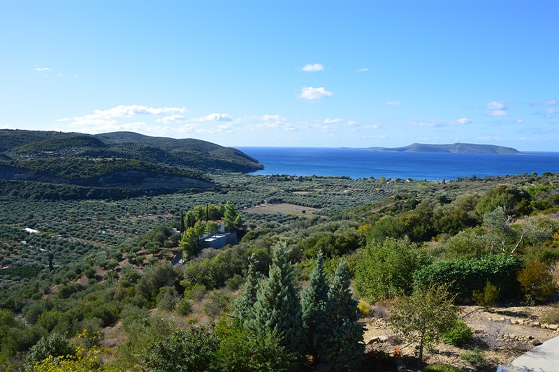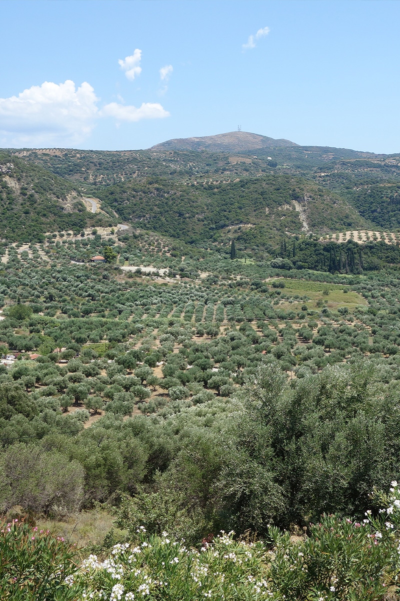 De olijfbomen hangen elke herfst weer vol met Koroneiki olijven die met de hand door de lokale bevolking geplukt en vervolgens in het naburige dorp Finikounda geperst worden (eerste koude persing) tot extra vierge olijfolie van premium kwaliteit.
