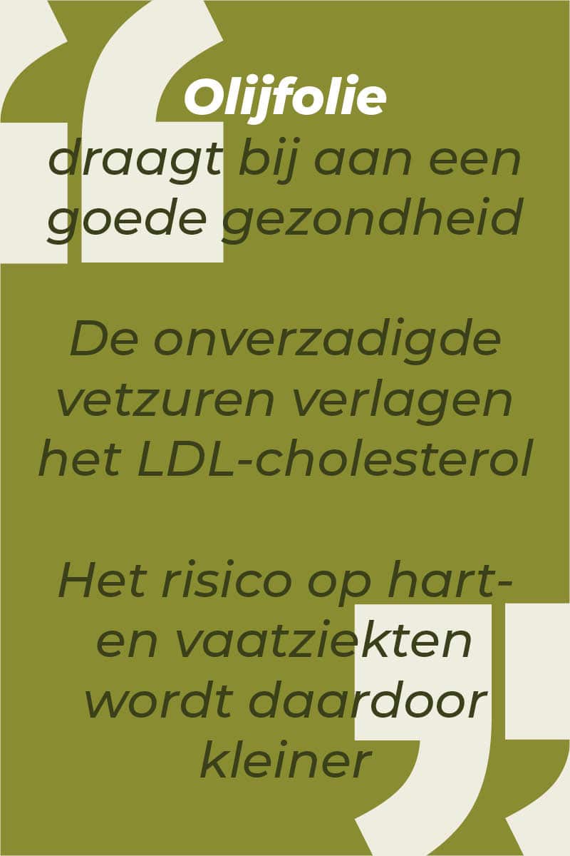 met de meeste smaak""De olijfolie bestaat voor ongeveer 70% uit voornamelijk enkelvoudige onverzadigde