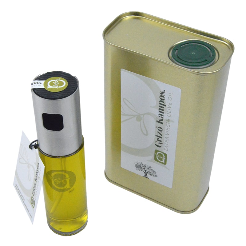 Bestel de Grizó Kampos sprayer & blik set vandaag nog en geniet van gemak van de sprayer en de Griekse Extra Vierge Olijfolie van Grizó Kampos.