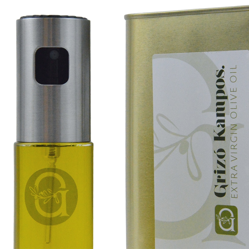 Grizó Kampos levert de Olijfolie Sprayer inclusief de Griekse extra vierge olijfolie in combinatie met een 1000ml blik olijfolie van het merk. De olijfolie sprayer is een handige hulp voor in de keuken, voor op tafel of voor bij de barbecue. Met de Grizó Kampos olijfolie sprayer kun je de gewenste hoeveelheid olijfolie snel, eenvoudig en gelijkmatig verdelen in de pan of over al jouw gerechten zoals bijvoorbeeld in salades, pasta’s, tapenades, vlees en vis.