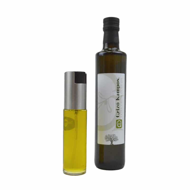 • 100ml sprayer extra vierge olijfolie inclusief Griekse extra vierge olijfolie.