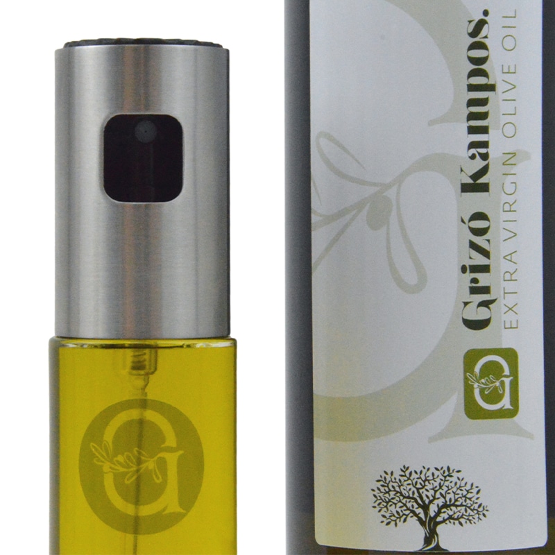 Bestel de Grizó Kampos sprayer & fles set vandaag nog en geniet van het gemak van de sprayer en van de Griekse Extra Vierge Olijfolie van Grizó Kampos.