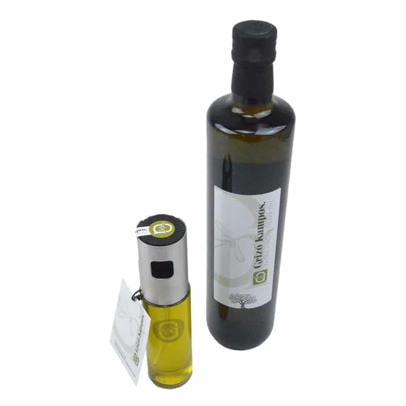 Grizó Kampos levert de Olijfolie Sprayer inclusief de Griekse extra vierge olijfolie in combinatie met een 750ml fles olijfolie van het merk. De olijfolie sprayer is een handige hulp voor in de keuken, voor op tafel of voor bij de barbecue. Met de Grizó Kampos olijfolie sprayer kun je de gewenste hoeveelheid olijfolie snel, eenvoudig en gelijkmatig verdelen in de pan of over al jouw gerechten zoals bijvoorbeeld in salades, pasta’s, tapenades, vlees en vis.