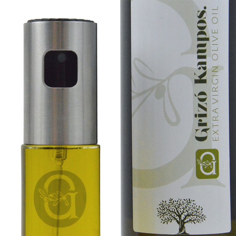 Bestel de Grizó Kampos sprayer & fles set vandaag nog en geniet van het gemak van de sprayer en de Griekse Extra Vierge Olijfolie van Grizó Kampos.