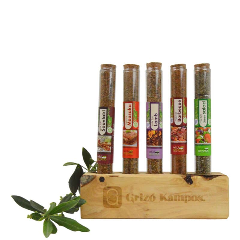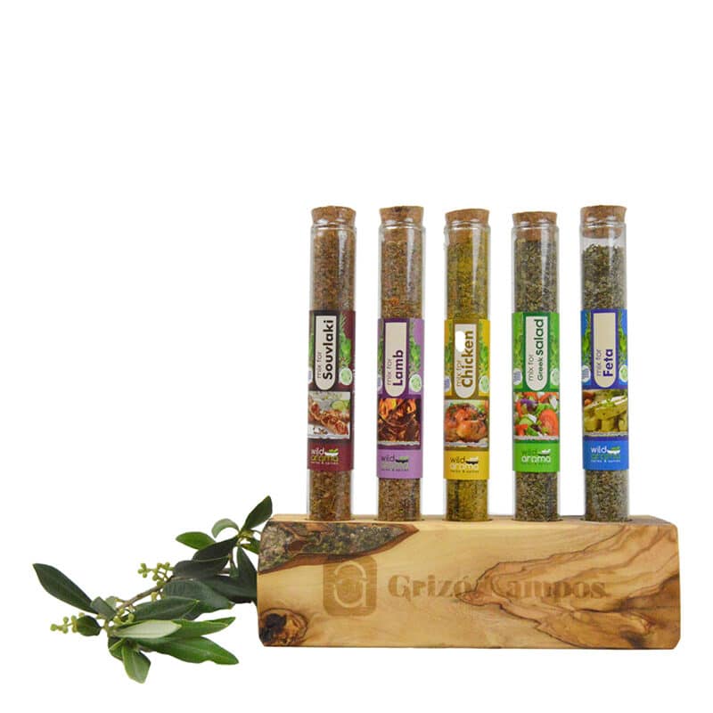 Het kruidenrek wordt compleet met vijf Griekse kruidenmixen geleverd: